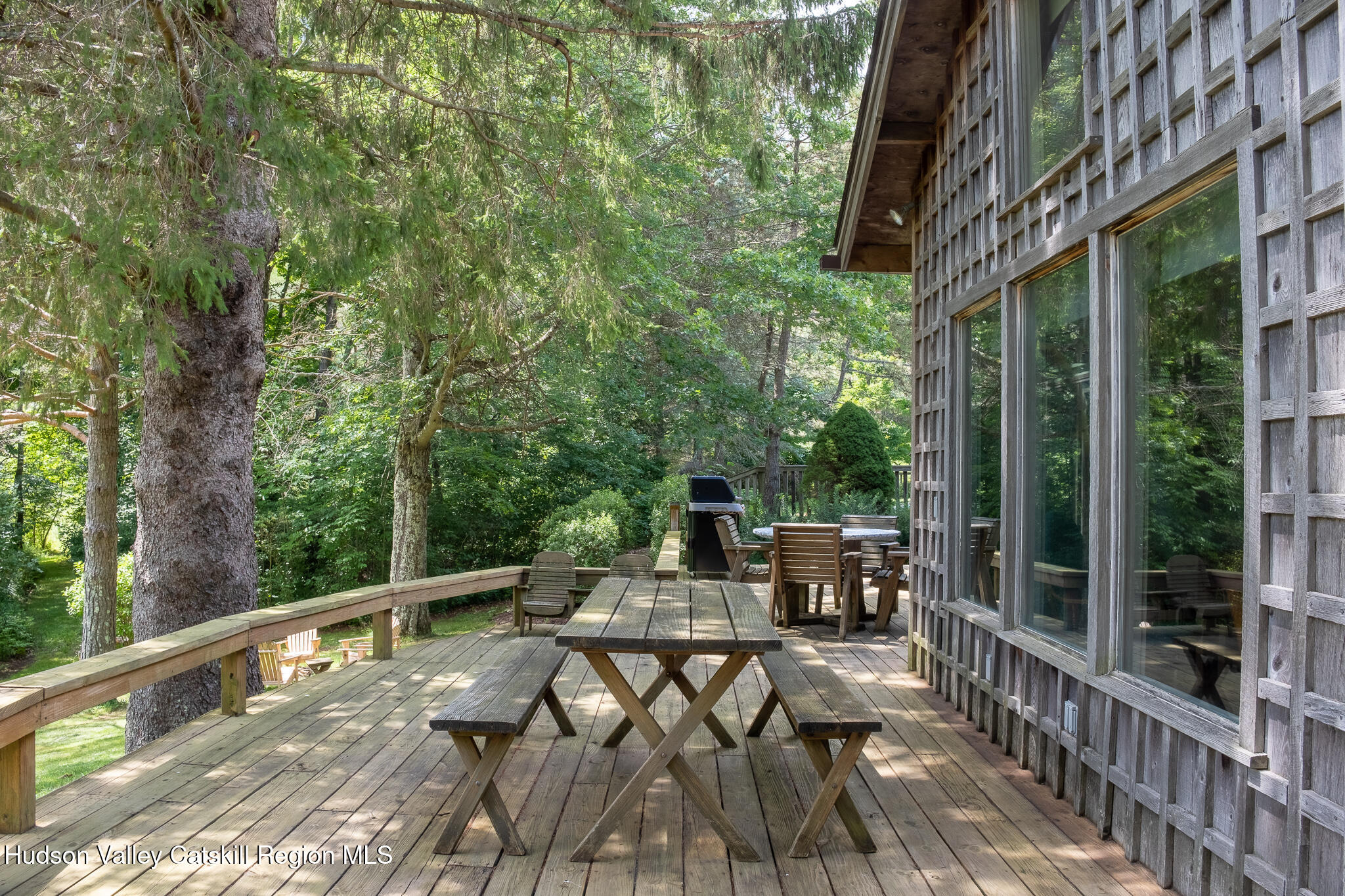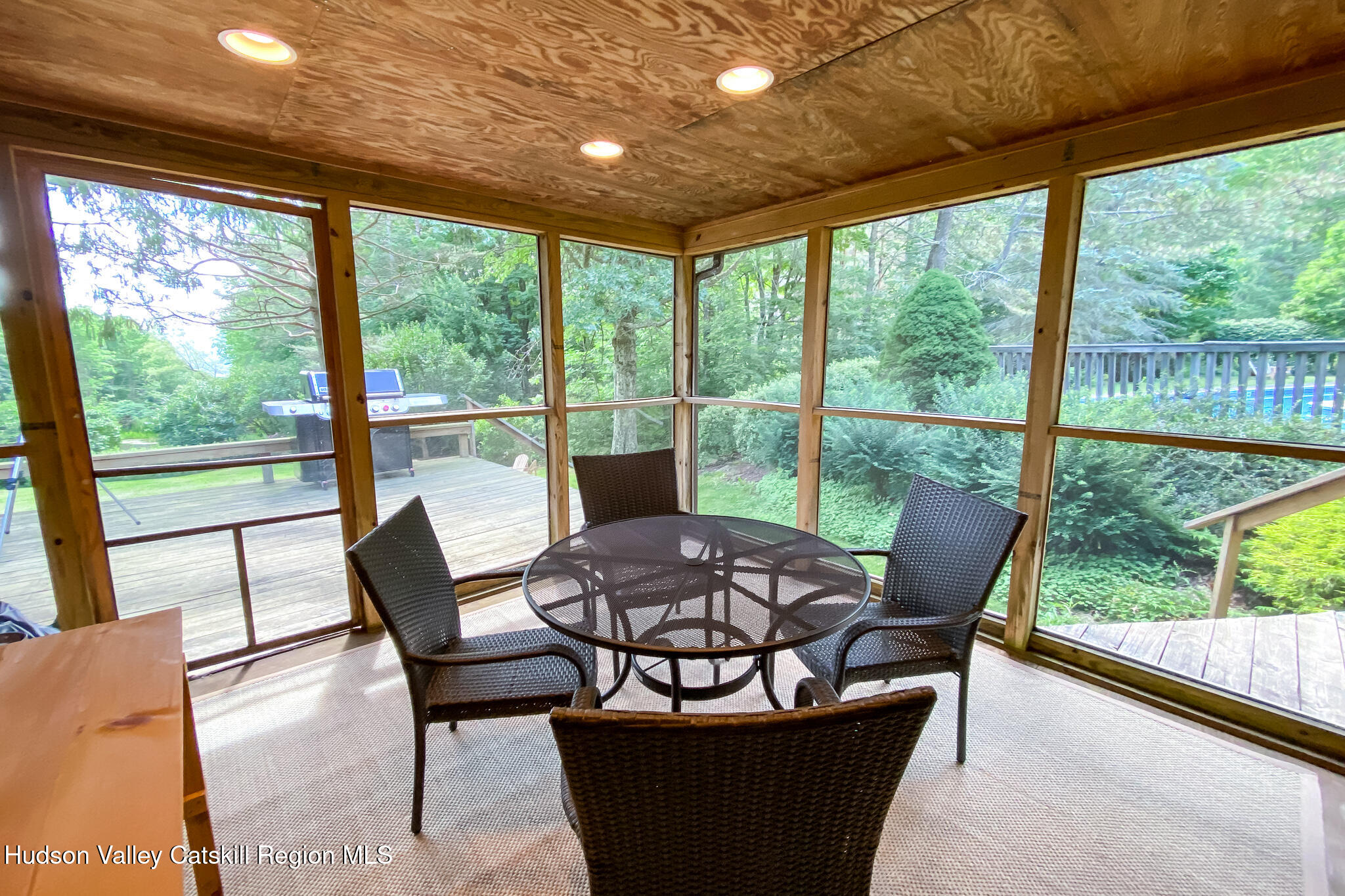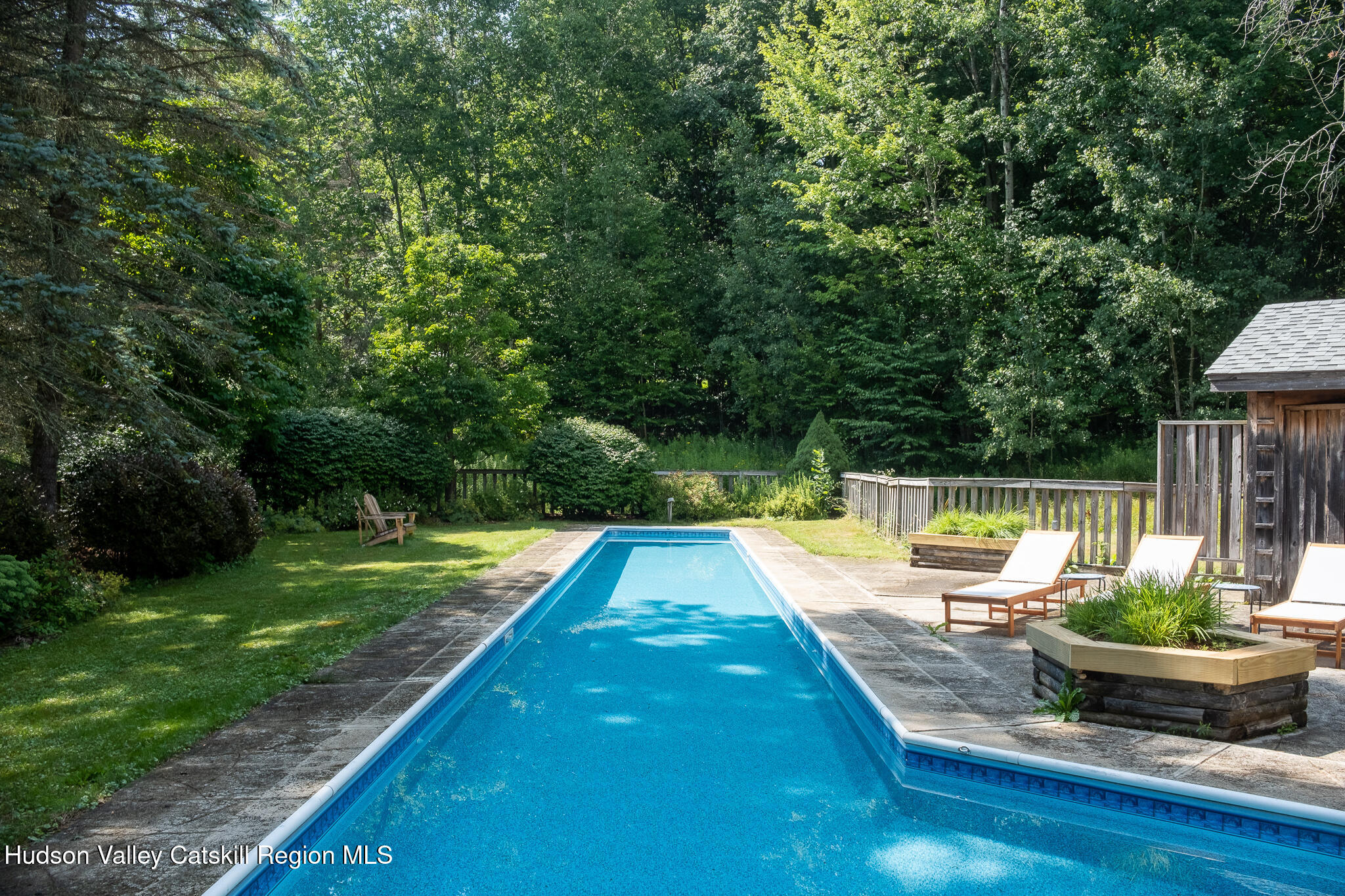 This four-season getaway is ideally located just three miles from Belleayre Ski Mountain and some of the region's best hiking trails. In the warmer months, unwind by the heated pool, complete with a pool house, outdoor shower and wet bar, or explore the trails on the property winding through evergreens and open meadows. Dine on the sprawling deck or screened-in porch, gather around the firepit by the pond, and take in the natural beauty of your own mountain escape.