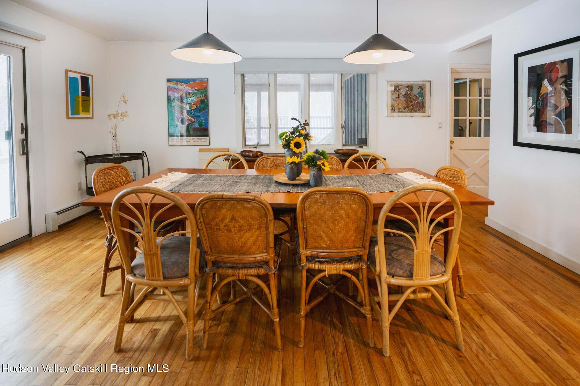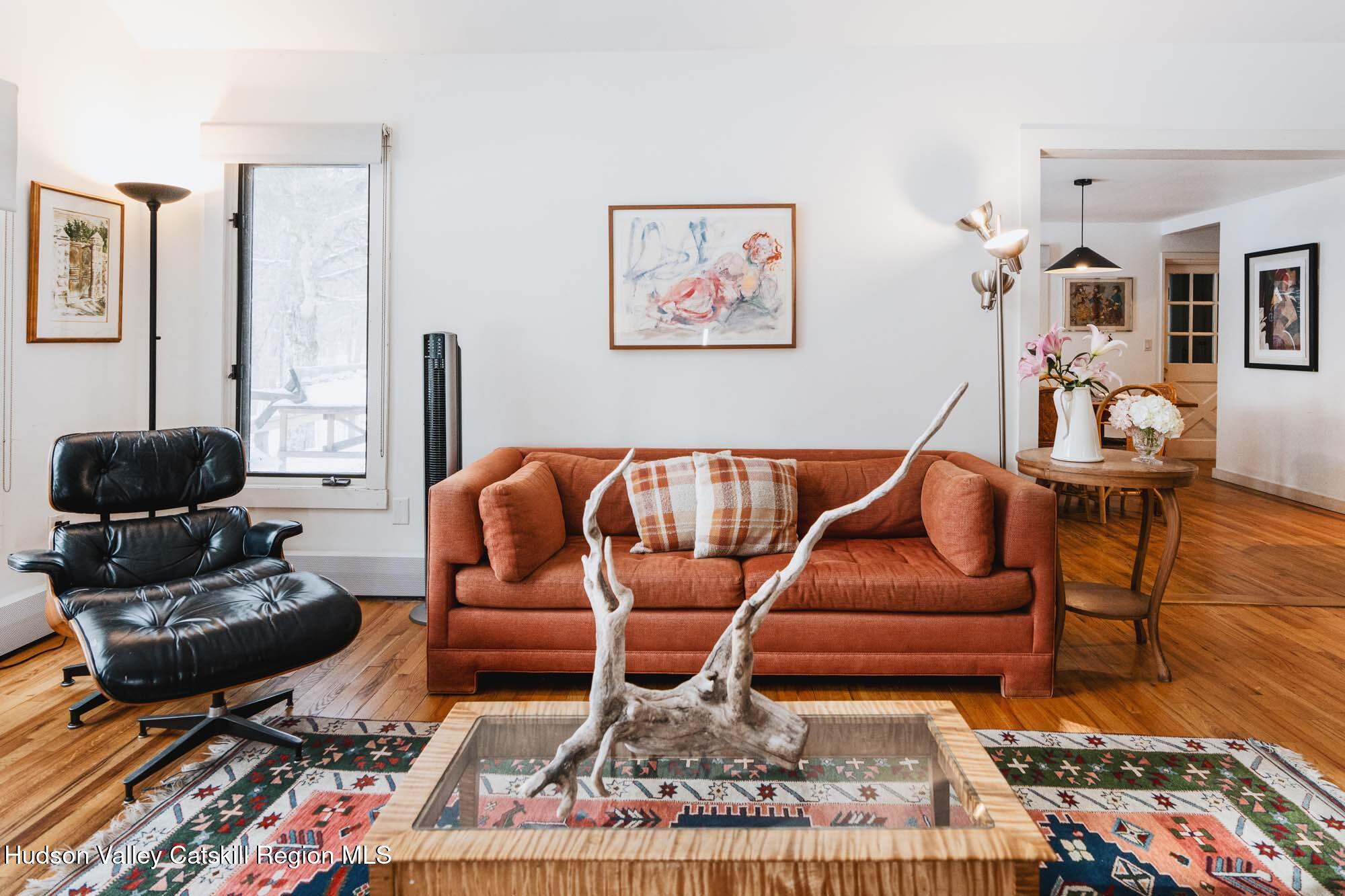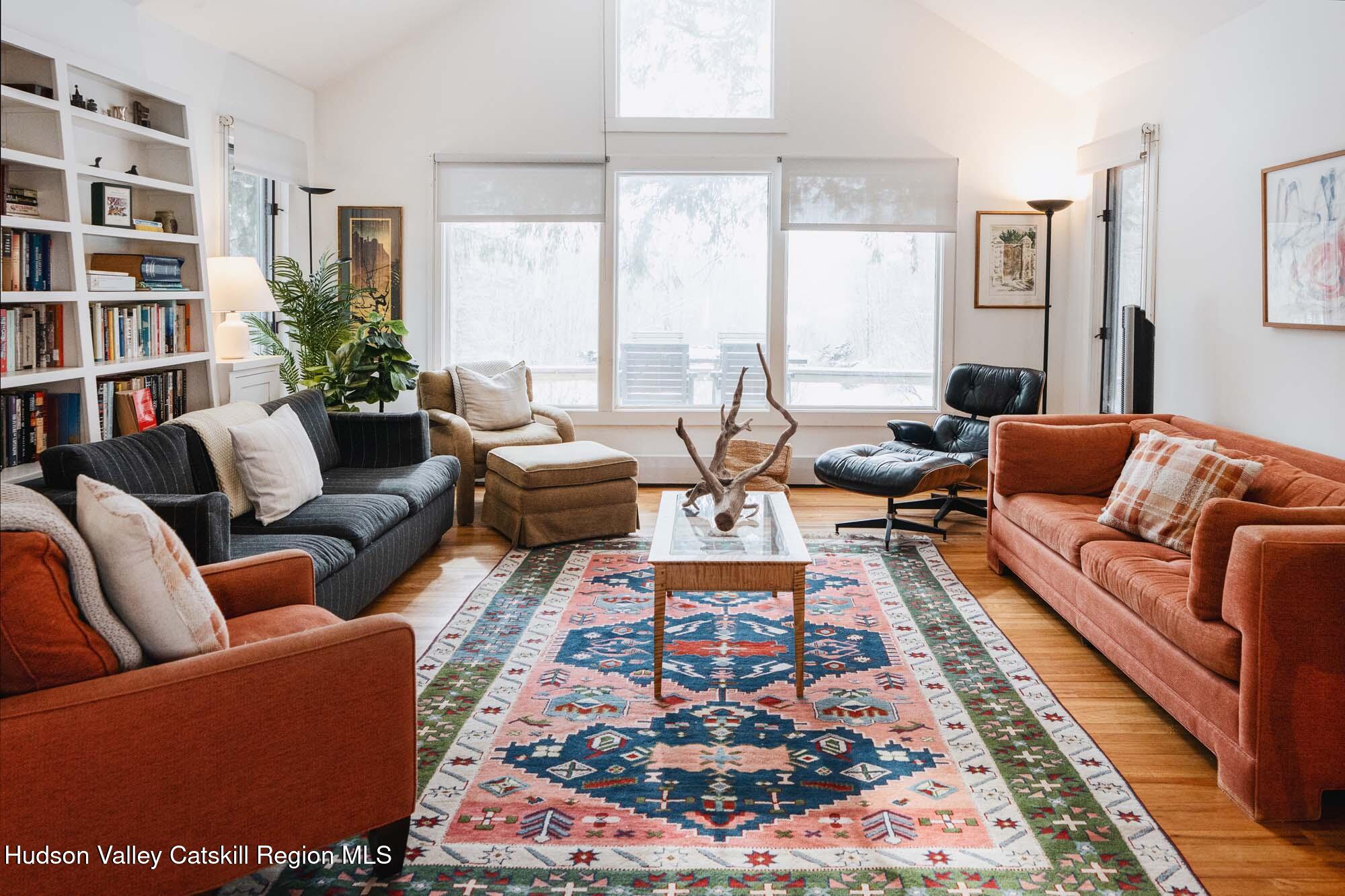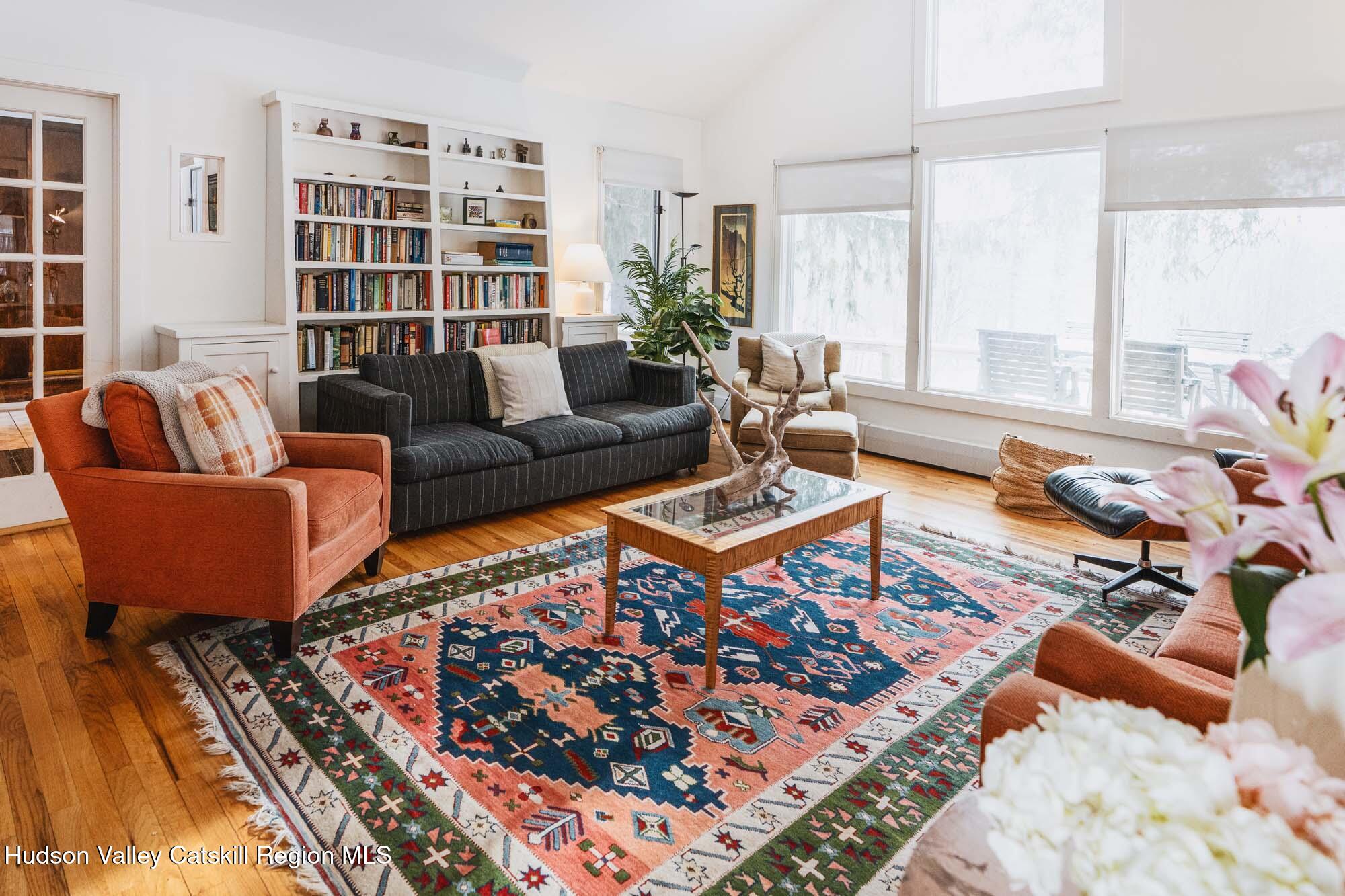 This four-season getaway is ideally located just three miles from Belleayre Ski Mountain and some of the region's best hiking trails. In the warmer months, unwind by the heated pool, complete with a pool house, outdoor shower and wet bar, or explore the trails on the property winding through evergreens and open meadows. Dine on the sprawling deck or screened-in porch, gather around the firepit by the pond, and take in the natural beauty of your own mountain escape.