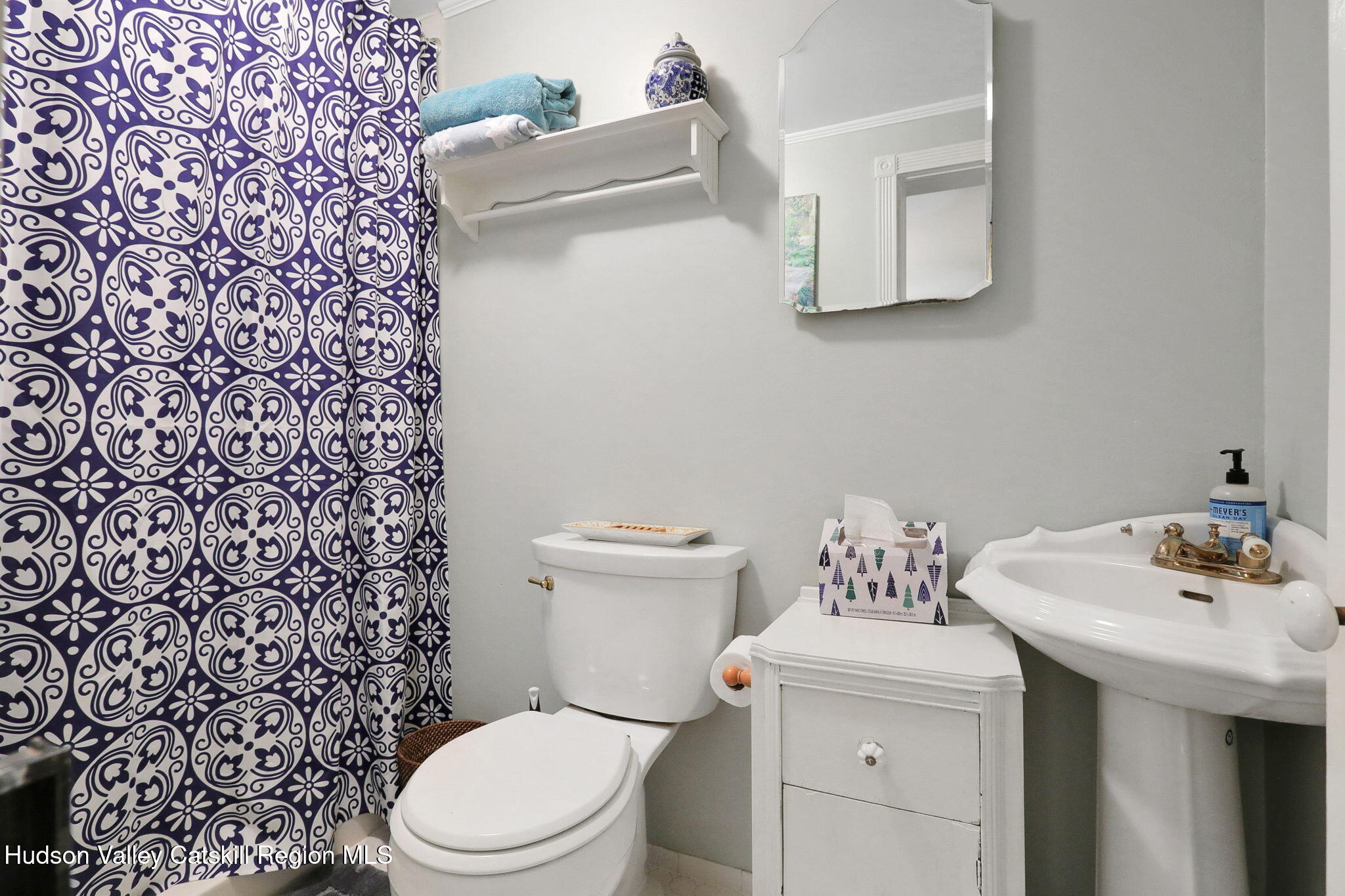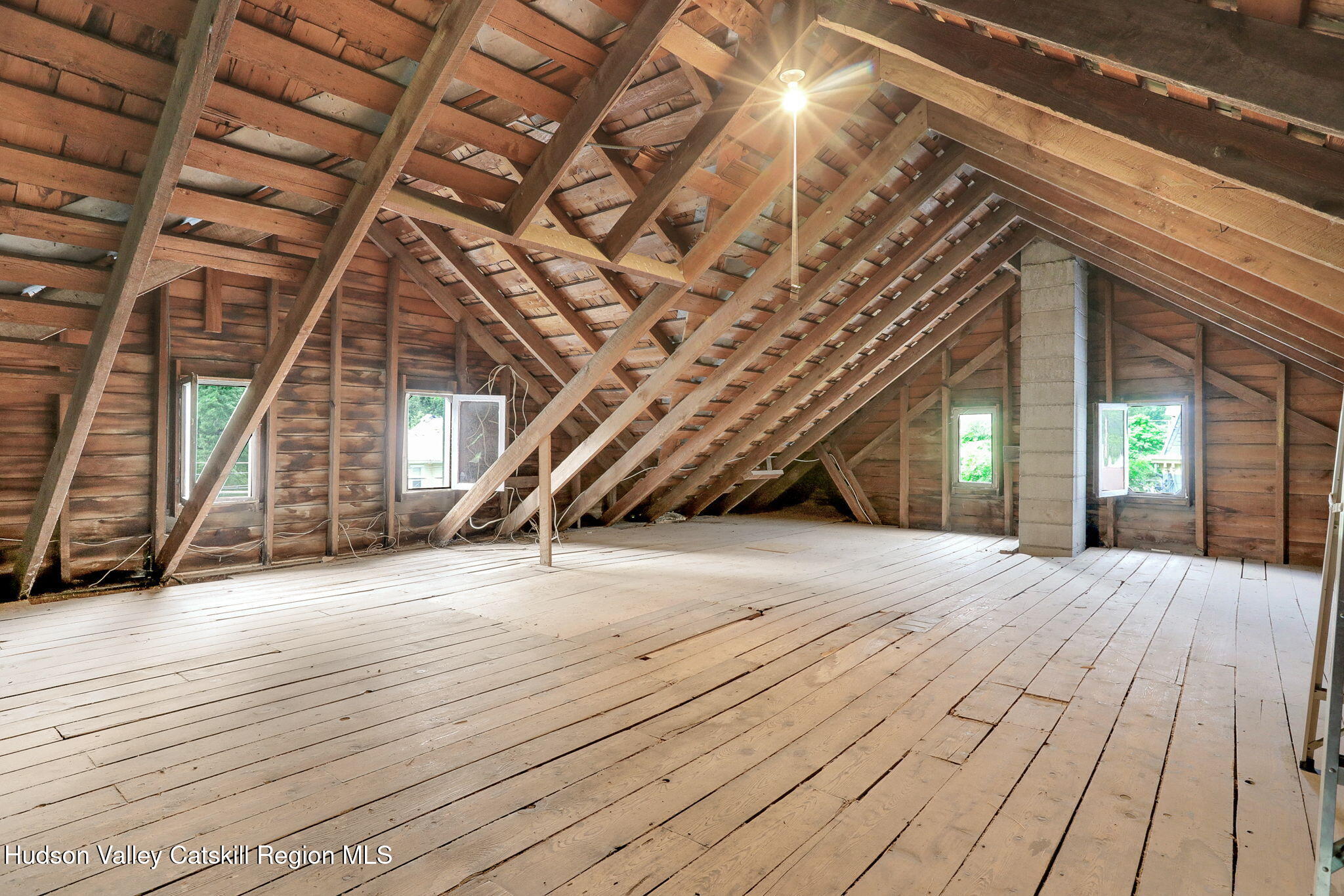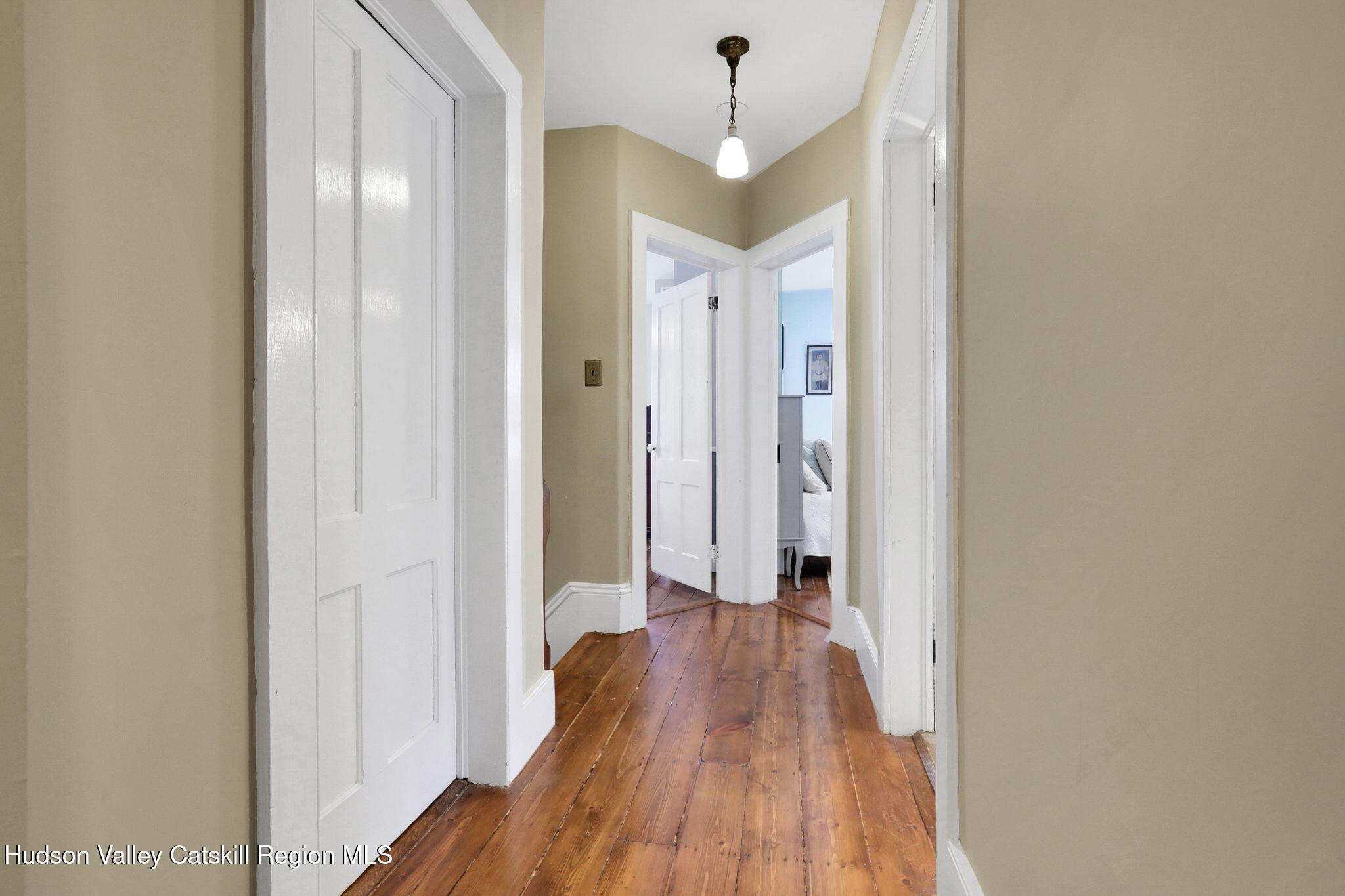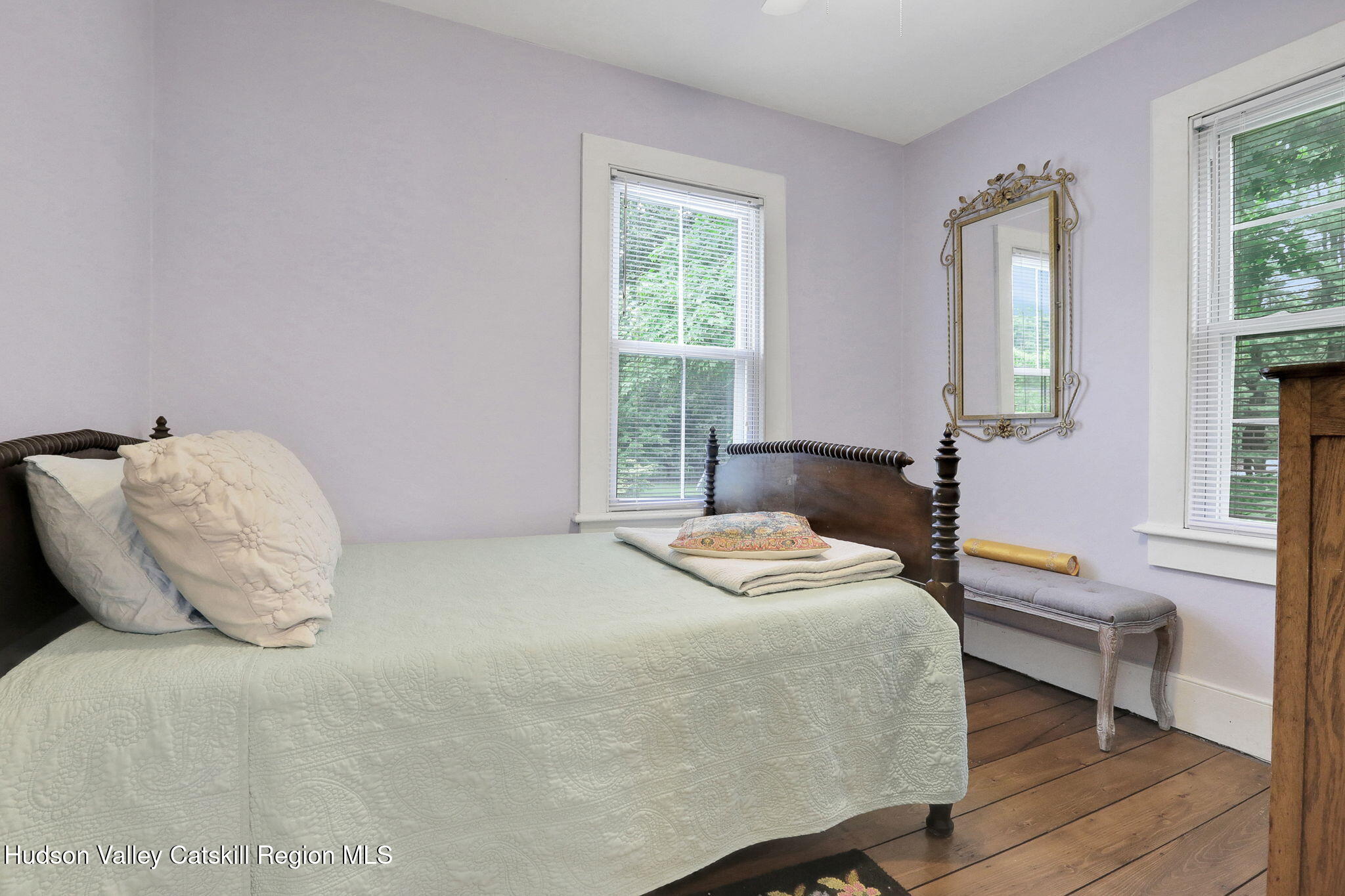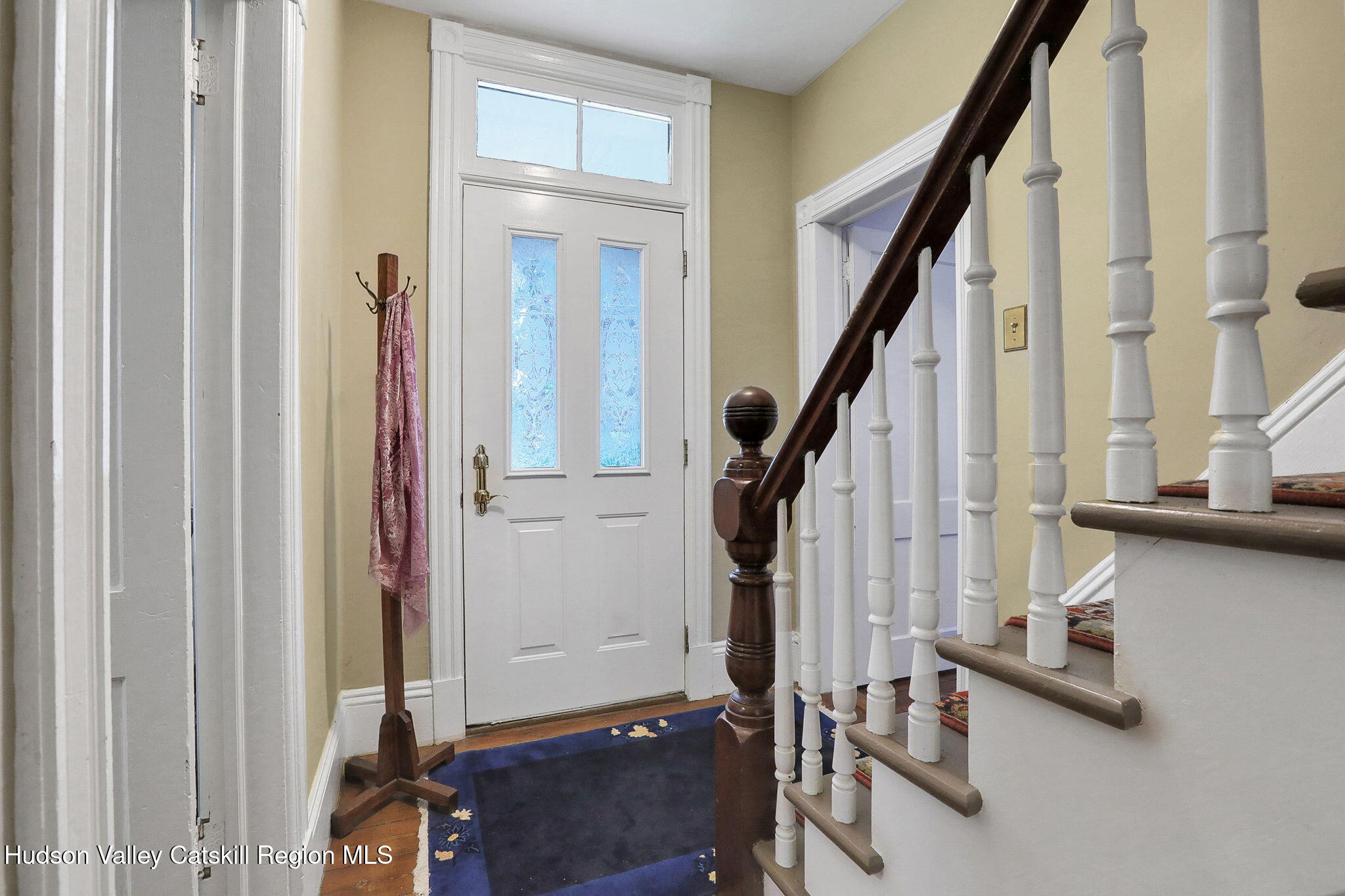 This beautiful Victorian home retains its old-world charm inside and out, yet it's been so well cared for, you'll have little to do to maintain it. Inside, you'll find striking wide-board pine flooring, classic decorative trim, built-in cabinets, and original doors and hardware. The home has comfortably spacious rooms, a full bath on each floor, a well-equipped working kitchen with a lovely breakfast area, and a full dry basement. Outside, enjoy the front porch entry, pretty storybook details, bay windows and second story turret. This turret enhances the primary bedroom with a cozy office space or reading nook. The second floor also hosts three other bedrooms, a bathroom with tub, and access to the gorgeous untouched full attic to use as you wish. The first floor offers spacious rooms for separate living and dining, plus a den and full bathroom with shower. If need be, the den can be easily turned into a sleeping room or private office by closing one of two doorways. The grounds are beautifully landscaped with lush gardens, an inviting covered patio that makes a great outdoor room with a feeling of privacy, and a cute outbuilding. This well-maintained home was recently painted and has a new central heat pump plus a new oil furnace for backup. The garage roof is recent, and the garage offers a full second story that would make a great studio or accessory dwelling unit, now encouraged by the town. Rumor has it that this home's storied past includes hosting both the Tillson post office and a millinery shop. Now it's a wonderful home in the friendly hamlet of Tillson where you can be mere steps from the hugely popular Darlings Roadhouse, less than two miles from Rosendale's quaint Main Street, and a short drive to New Paltz or Kingston. Catch the NYC bus one short block away. It's really a super location.