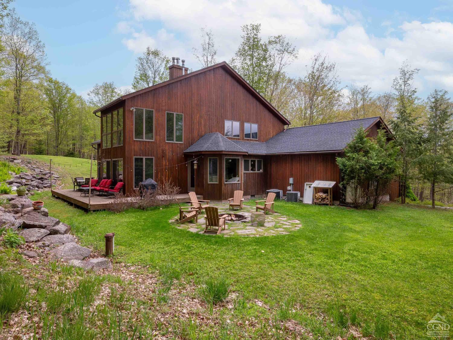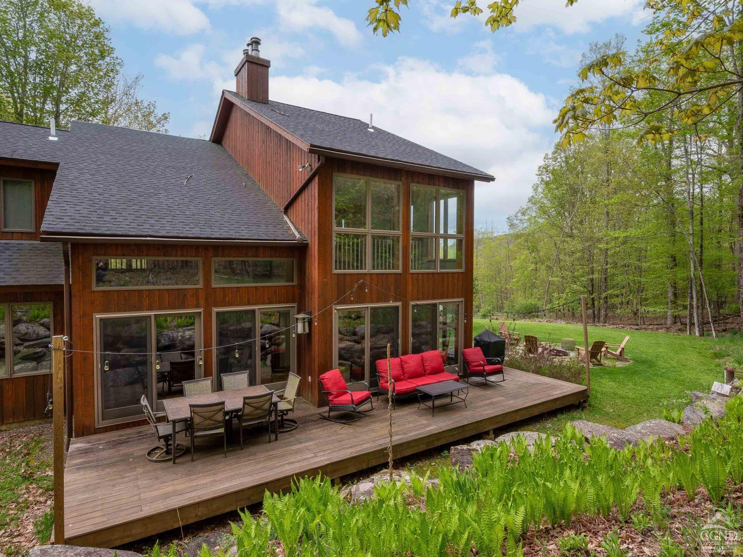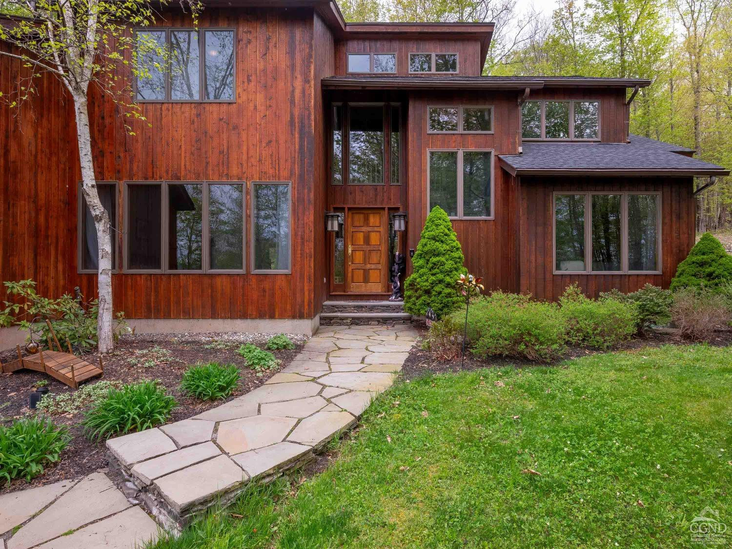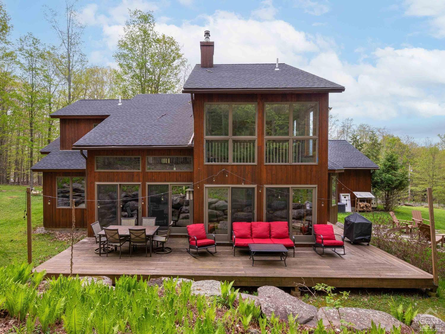 Discover serenity in this exquisite cedar contemporary home with seasonal slope views nestled in a private wooded setting, just 5 minutes from the charming resort town of Windham and a mere 2.5 hours outside of New York City. This stunning property offers a harmonious blend of rustic charm and modern amenities. Step inside to find a home that radiates warmth and sophistication. Hardwood floors and vaulted ceilings adorned in pine create an airy and inviting atmosphere, with tons of glass ensuring each room is bathed in natural light. Two cozy fireplaces further complement the ambiance. A spacious kitchen equipped with stainless steel appliances, double ovens, granite countertops, and a large breakfast bar is open to a spacious dining room with sliding glass doors that lead to an expansive deck, patio and firepit area making indoor and outdoor entertaining seamless. Four generously sized bedrooms, including two ensuite sanctuaries on the second floor, offer comfort and relaxation. The primary ensuite features a jetted tub, a fireplace, and French doors leading to a bright, flexible space that is currently used as a home office. This home is the perfect package featuring central air conditioning, a generator, a paved driveway, and an attached 2-car garage leading to a full unfinished basement. The property's landscaping is designed to enhance its woodland setting, with stone walls, walkways, and a patio blending seamlessly with the forest backdrop. 429 Mill Street isn't just a home; it's an invitation to enjoy life's simple pleasures in a setting of unmatched beauty and privacy. With its emphasis on natural landscapes, luxurious amenities, and proximity to recreational activities, it represents the ideal fusion of comfort and adventure. Schedule an in-person viewing today!