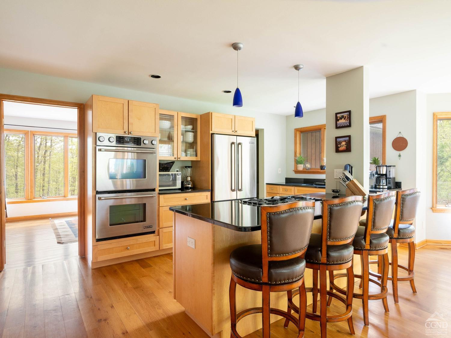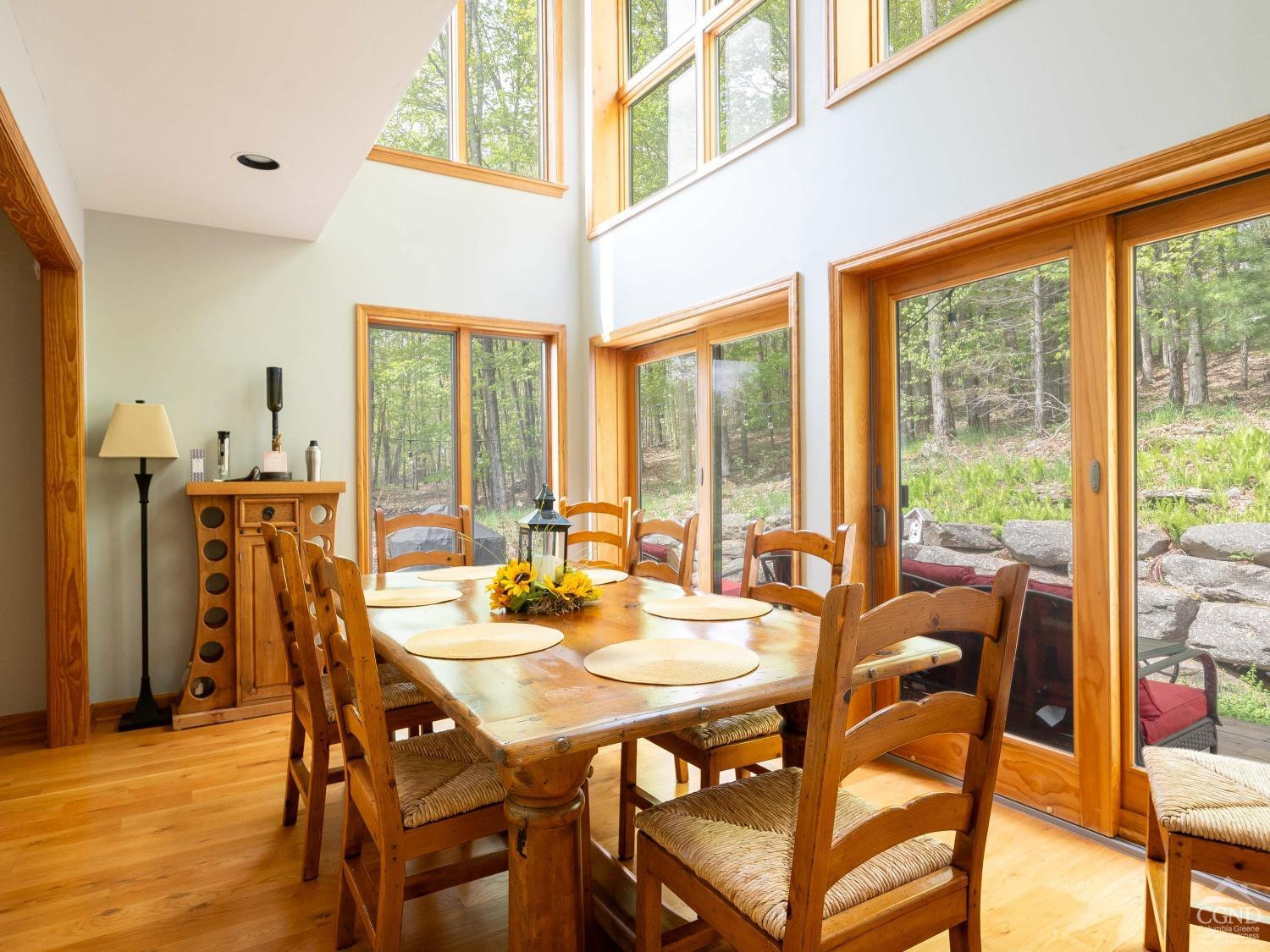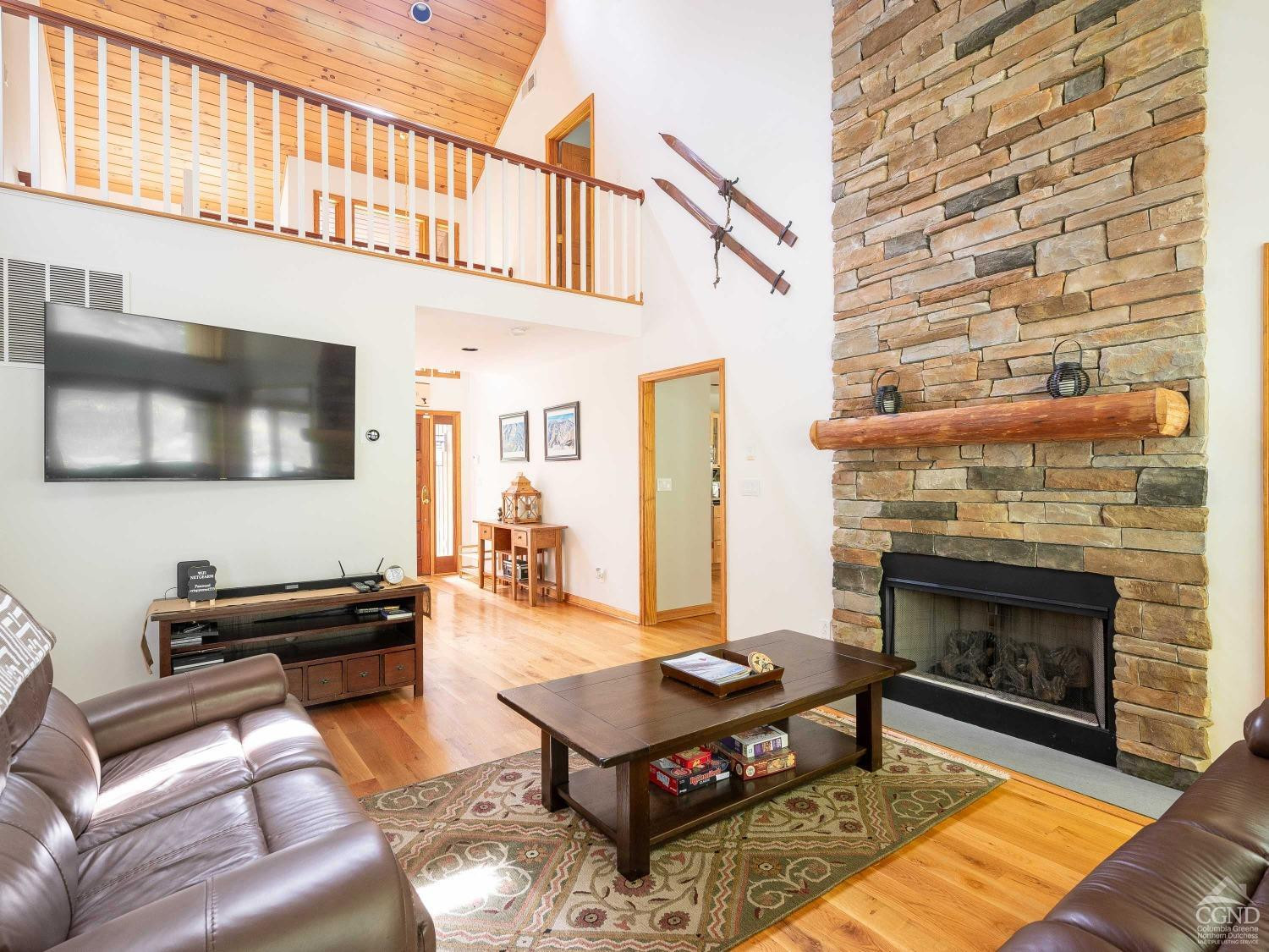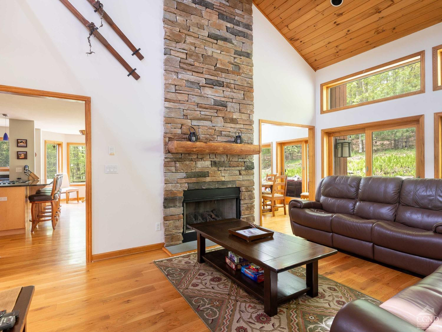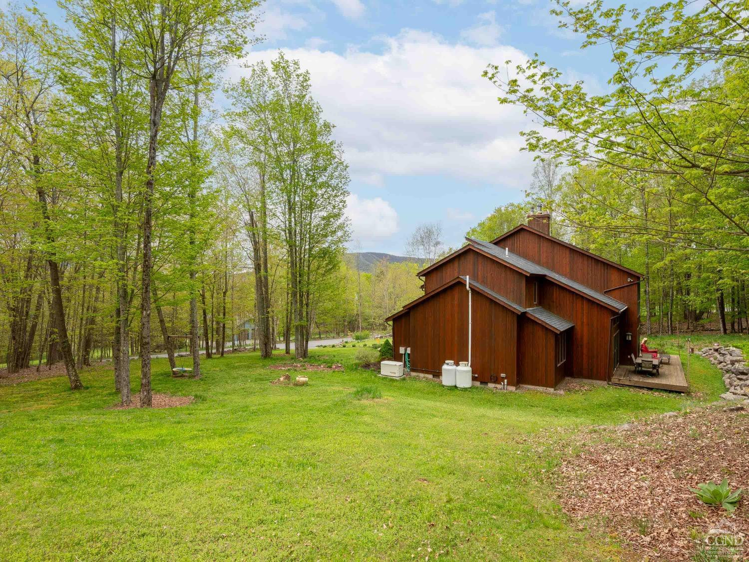 Discover serenity in this exquisite cedar contemporary home with seasonal slope views nestled in a private wooded setting, just 5 minutes from the charming resort town of Windham and a mere 2.5 hours outside of New York City. This stunning property offers a harmonious blend of rustic charm and modern amenities. Step inside to find a home that radiates warmth and sophistication. Hardwood floors and vaulted ceilings adorned in pine create an airy and inviting atmosphere, with tons of glass ensuring each room is bathed in natural light. Two cozy fireplaces further complement the ambiance. A spacious kitchen equipped with stainless steel appliances, double ovens, granite countertops, and a large breakfast bar is open to a spacious dining room with sliding glass doors that lead to an expansive deck, patio and firepit area making indoor and outdoor entertaining seamless. Four generously sized bedrooms, including two ensuite sanctuaries on the second floor, offer comfort and relaxation. The primary ensuite features a jetted tub, a fireplace, and French doors leading to a bright, flexible space that is currently used as a home office. This home is the perfect package featuring central air conditioning, a generator, a paved driveway, and an attached 2-car garage leading to a full unfinished basement. The property's landscaping is designed to enhance its woodland setting, with stone walls, walkways, and a patio blending seamlessly with the forest backdrop. 429 Mill Street isn't just a home; it's an invitation to enjoy life's simple pleasures in a setting of unmatched beauty and privacy. With its emphasis on natural landscapes, luxurious amenities, and proximity to recreational activities, it represents the ideal fusion of comfort and adventure. Schedule an in-person viewing today!