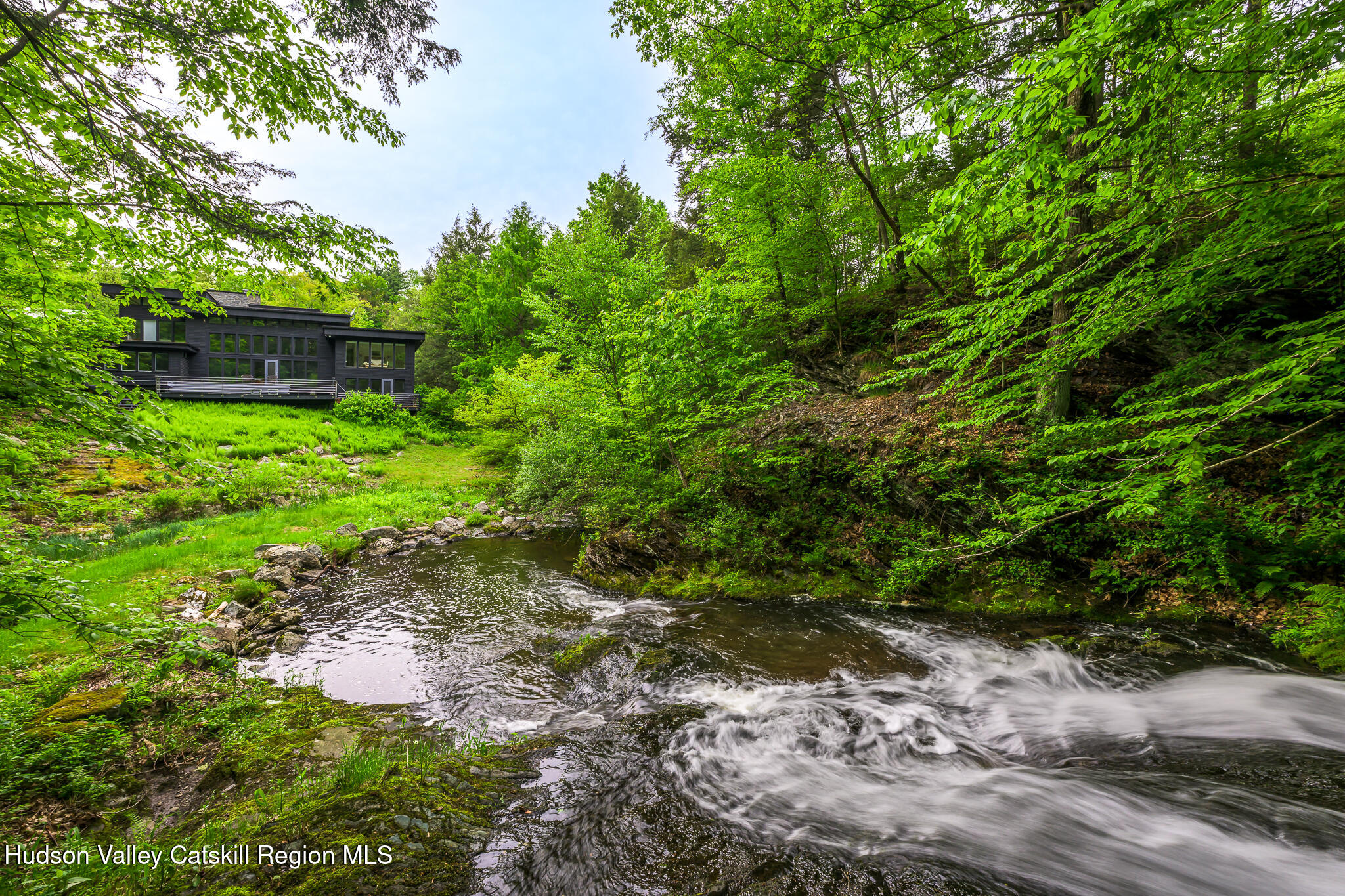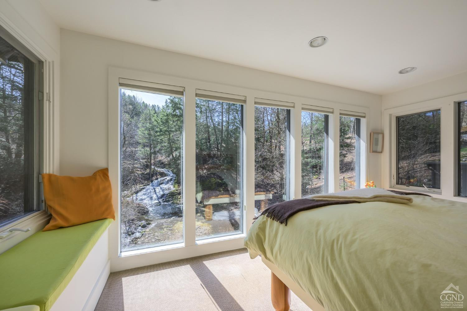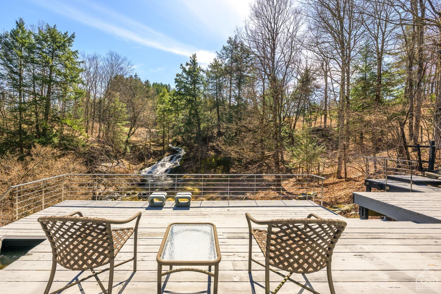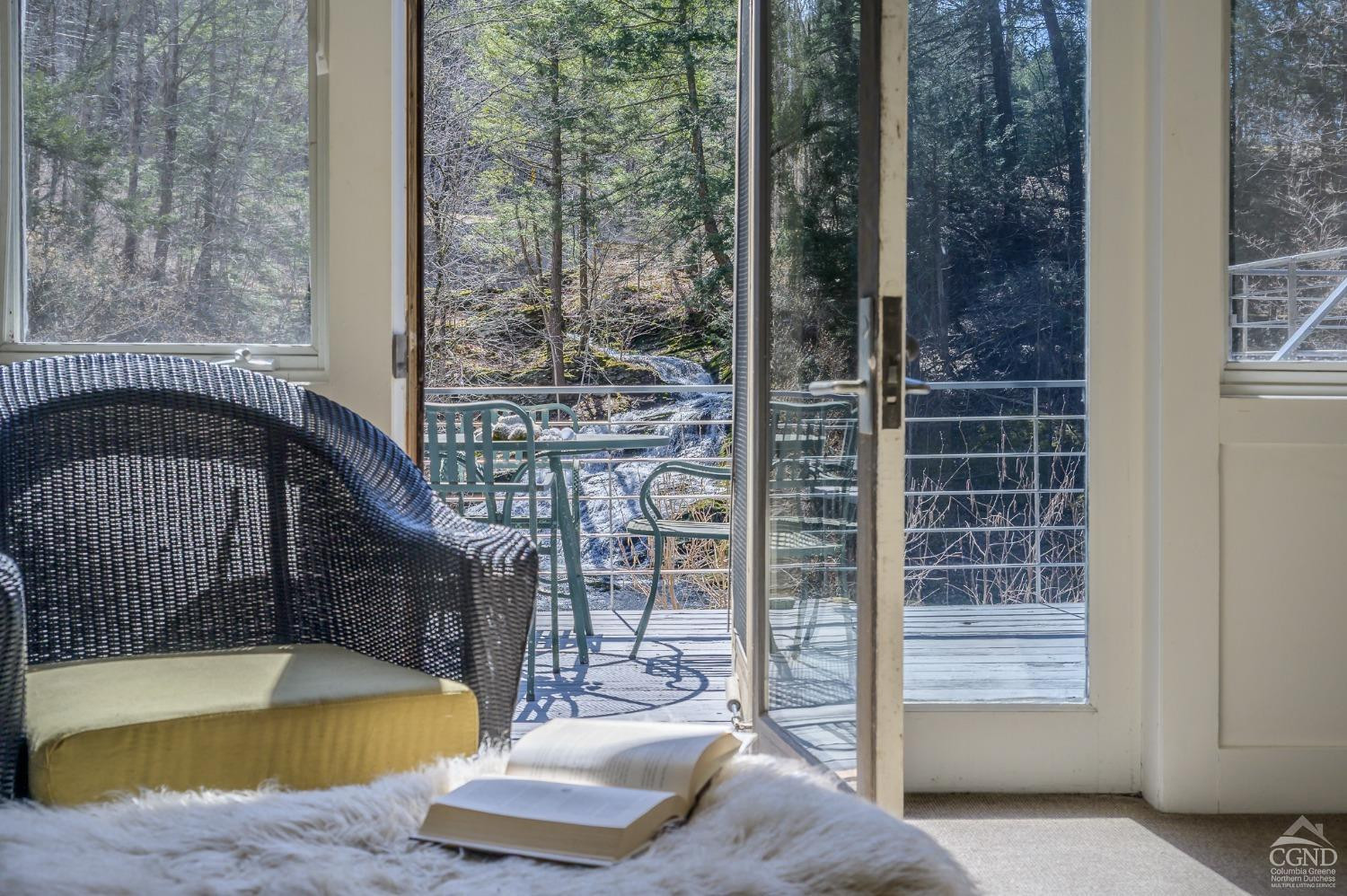 The Waterfall House is a modernist masterpiece, uniquely defined by its own cascading waterfall--a view you can enjoy from every room. Wade in the serene swimming hole below or wander through the exquisitely landscaped gardens that surround the home. Cozy up by the living room fire and admire the waterfall through a dramatic wall of glass.Designed to exist in perfect harmony with its natural surroundings, the home is nestled among woodlands, wetlands, and wild grasses, all part of a stunning garden created by a renowned restoration gardener.The home's layout is a masterclass in thoughtful design, with multiple levels that offer both connection and seclusion. Each space flows effortlessly into the next, creating a sense of harmony and ease. The primary suite is a true retreat, perched above the serene waterfall and complete with its own private balcony, perfect for morning coffee or evening reflection.A hidden tunnel leads you to your private gym and studio, offering both inspiration and solitude. Though the setting feels completely secluded, you're just five minutes from a morning coffee in charming Chatham Village.A fair warning: your guests may never want to leave.