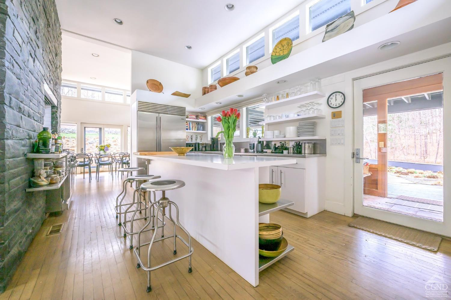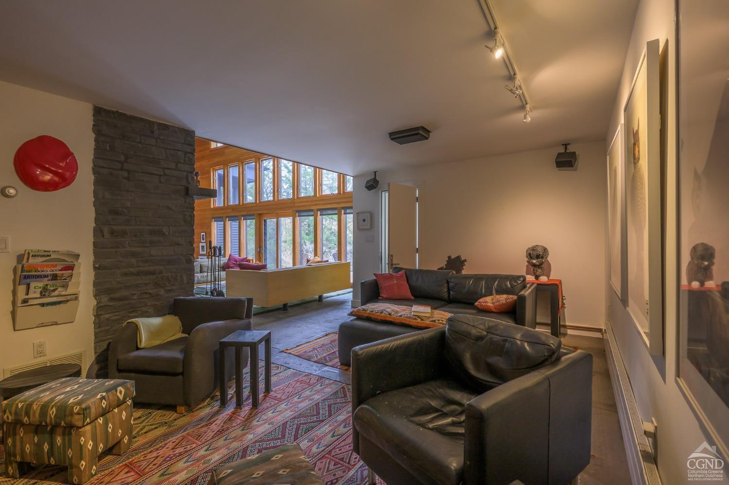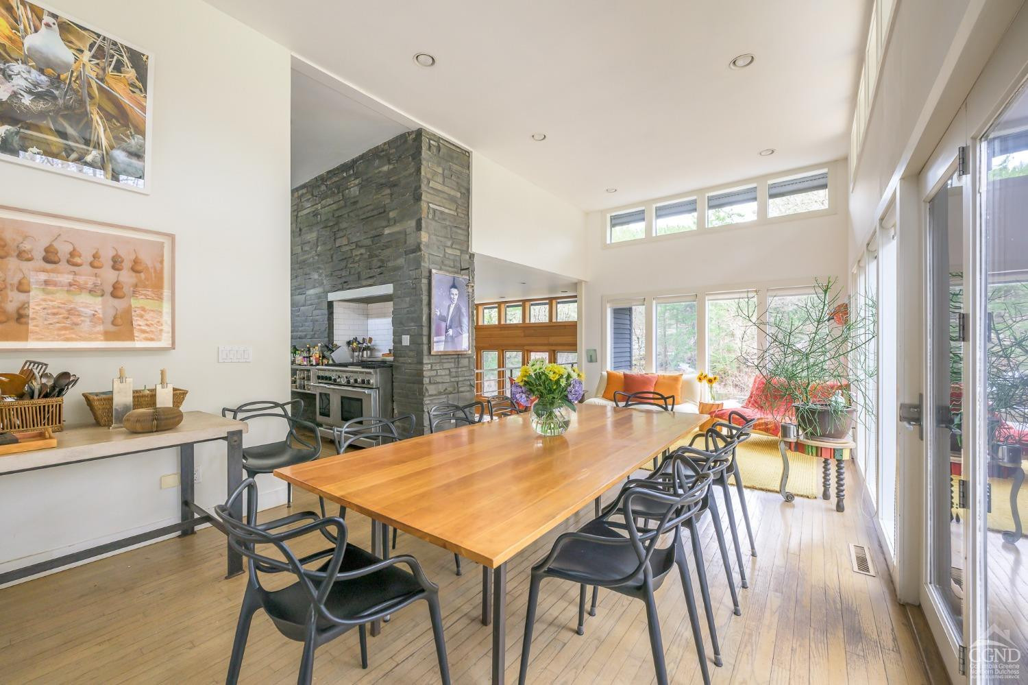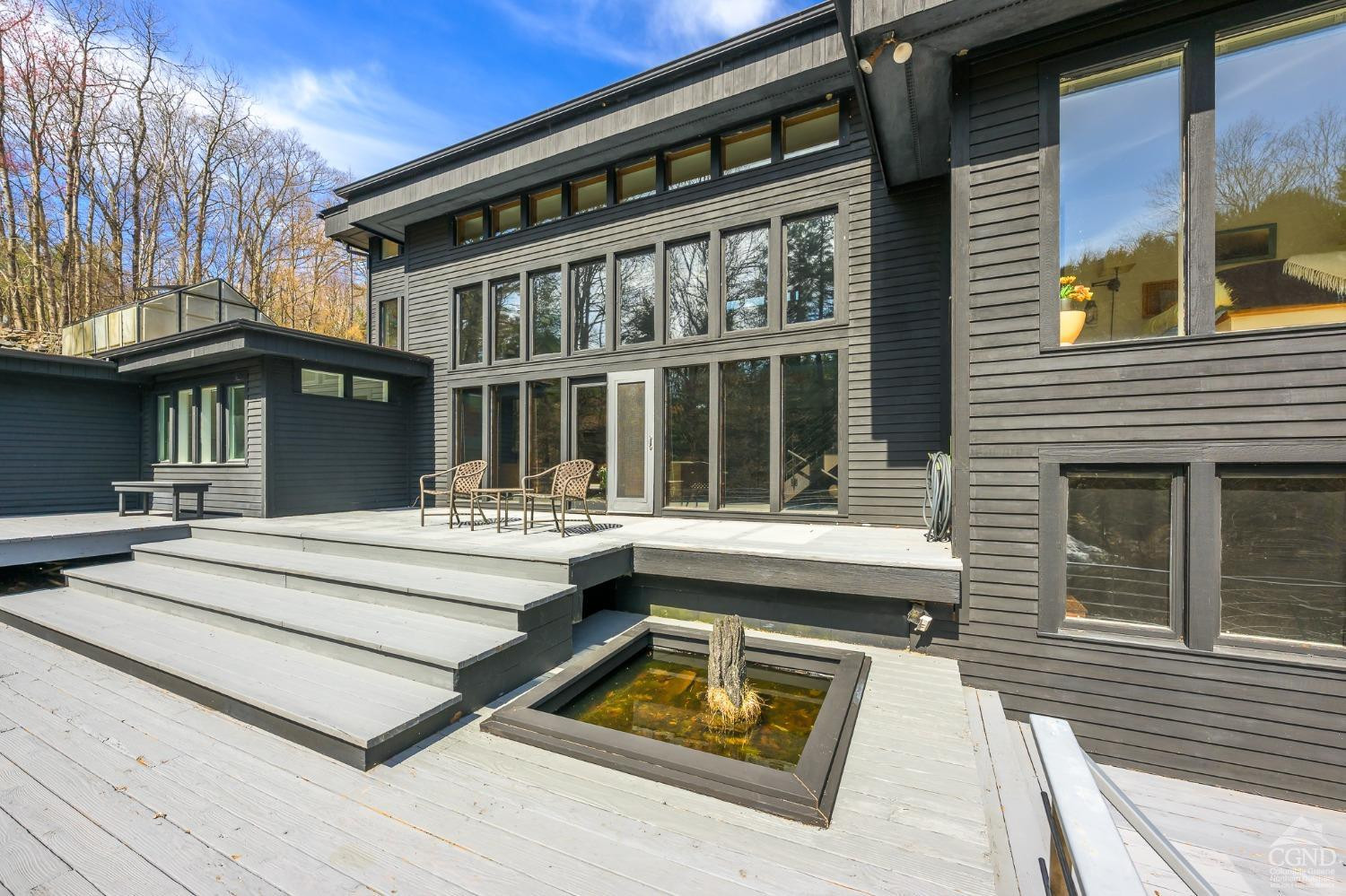 The Waterfall House is a modernist masterpiece, uniquely defined by its own cascading waterfall--a view you can enjoy from every room. Wade in the serene swimming hole below or wander through the exquisitely landscaped gardens that surround the home. Cozy up by the living room fire and admire the waterfall through a dramatic wall of glass.Designed to exist in perfect harmony with its natural surroundings, the home is nestled among woodlands, wetlands, and wild grasses, all part of a stunning garden created by a renowned restoration gardener.The home's layout is a masterclass in thoughtful design, with multiple levels that offer both connection and seclusion. Each space flows effortlessly into the next, creating a sense of harmony and ease. The primary suite is a true retreat, perched above the serene waterfall and complete with its own private balcony, perfect for morning coffee or evening reflection.A hidden tunnel leads you to your private gym and studio, offering both inspiration and solitude. Though the setting feels completely secluded, you're just five minutes from a morning coffee in charming Chatham Village.A fair warning: your guests may never want to leave.