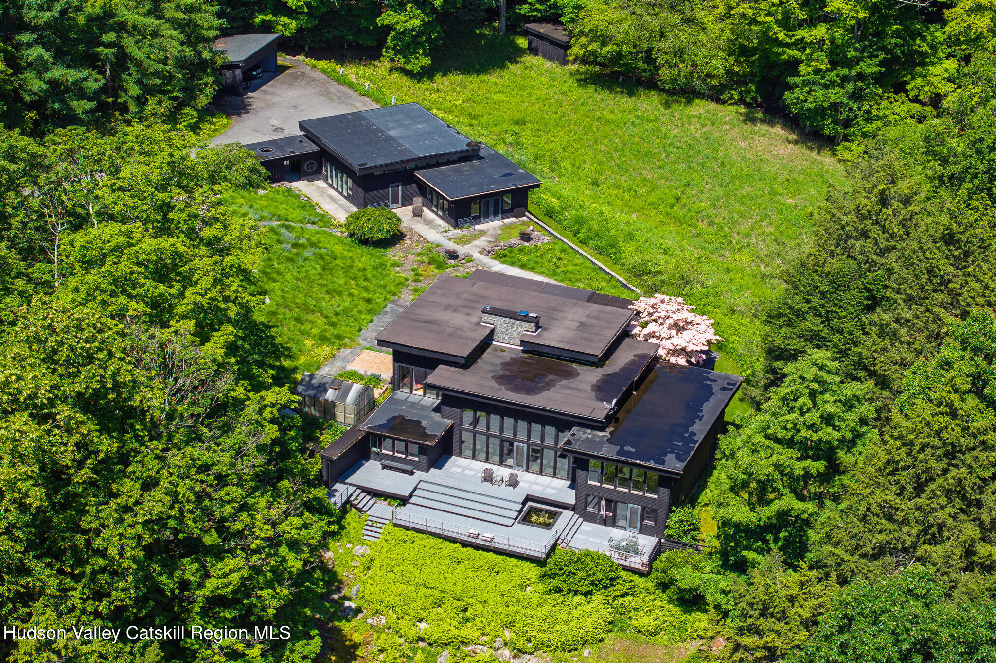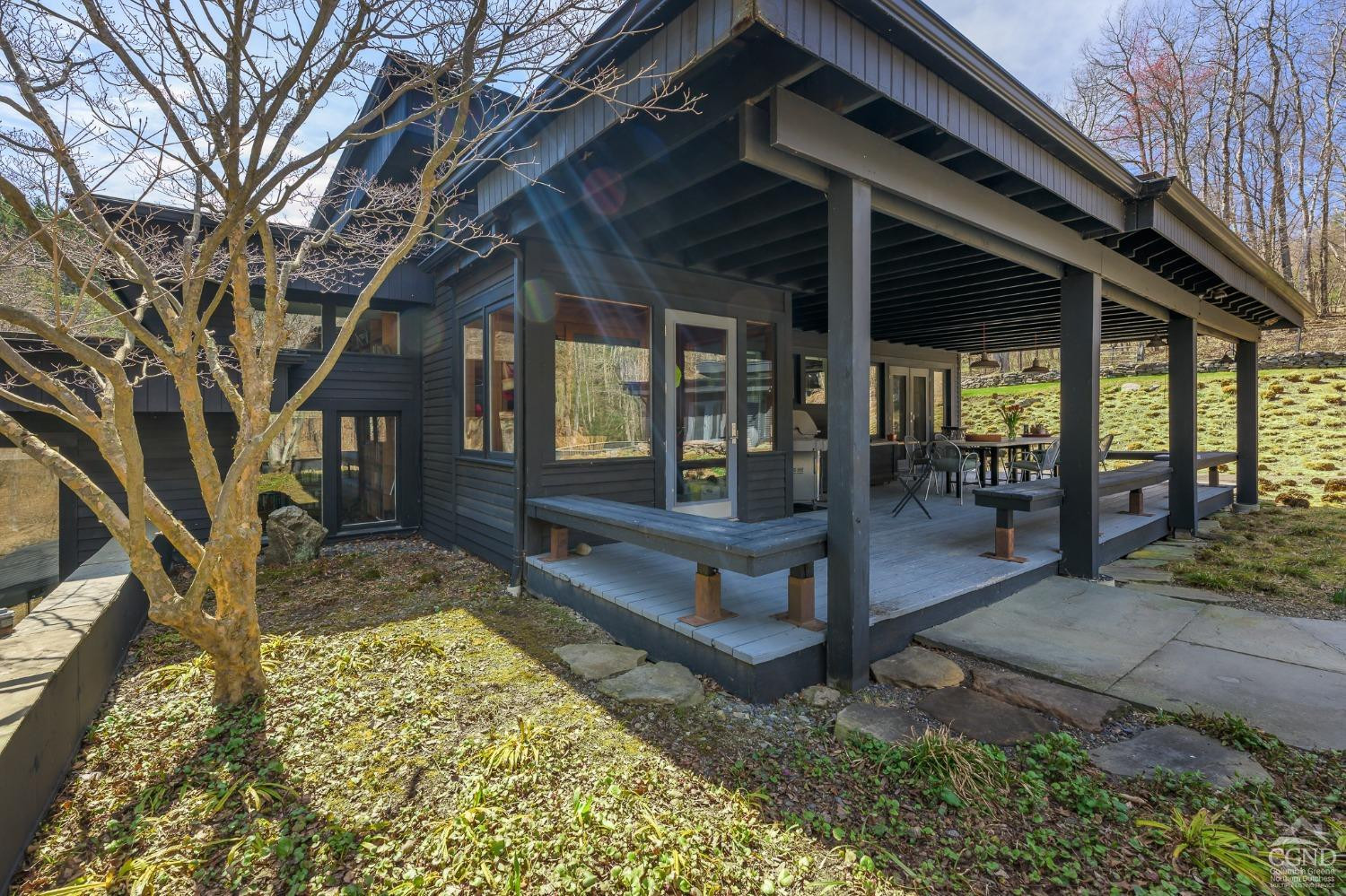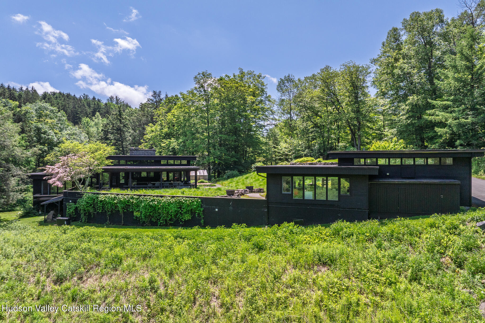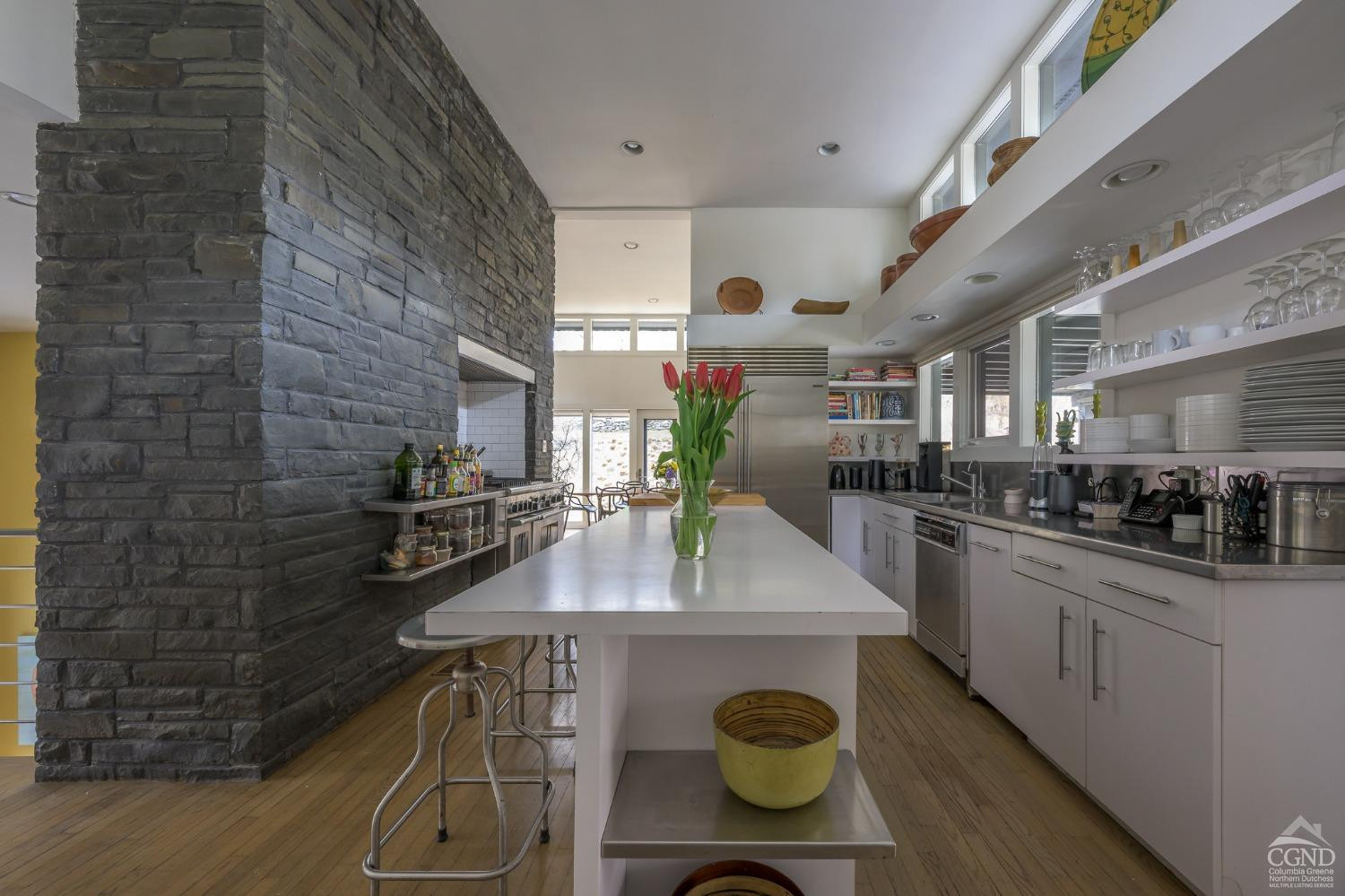 The Waterfall House is a modernist masterpiece, uniquely defined by its own cascading waterfall--a view you can enjoy from every room. Wade in the serene swimming hole below or wander through the exquisitely landscaped gardens that surround the home. Cozy up by the living room fire and admire the waterfall through a dramatic wall of glass.Designed to exist in perfect harmony with its natural surroundings, the home is nestled among woodlands, wetlands, and wild grasses, all part of a stunning garden created by a renowned restoration gardener.The home's layout is a masterclass in thoughtful design, with multiple levels that offer both connection and seclusion. Each space flows effortlessly into the next, creating a sense of harmony and ease. The primary suite is a true retreat, perched above the serene waterfall and complete with its own private balcony, perfect for morning coffee or evening reflection.A hidden tunnel leads you to your private gym and studio, offering both inspiration and solitude. Though the setting feels completely secluded, you're just five minutes from a morning coffee in charming Chatham Village.A fair warning: your guests may never want to leave.