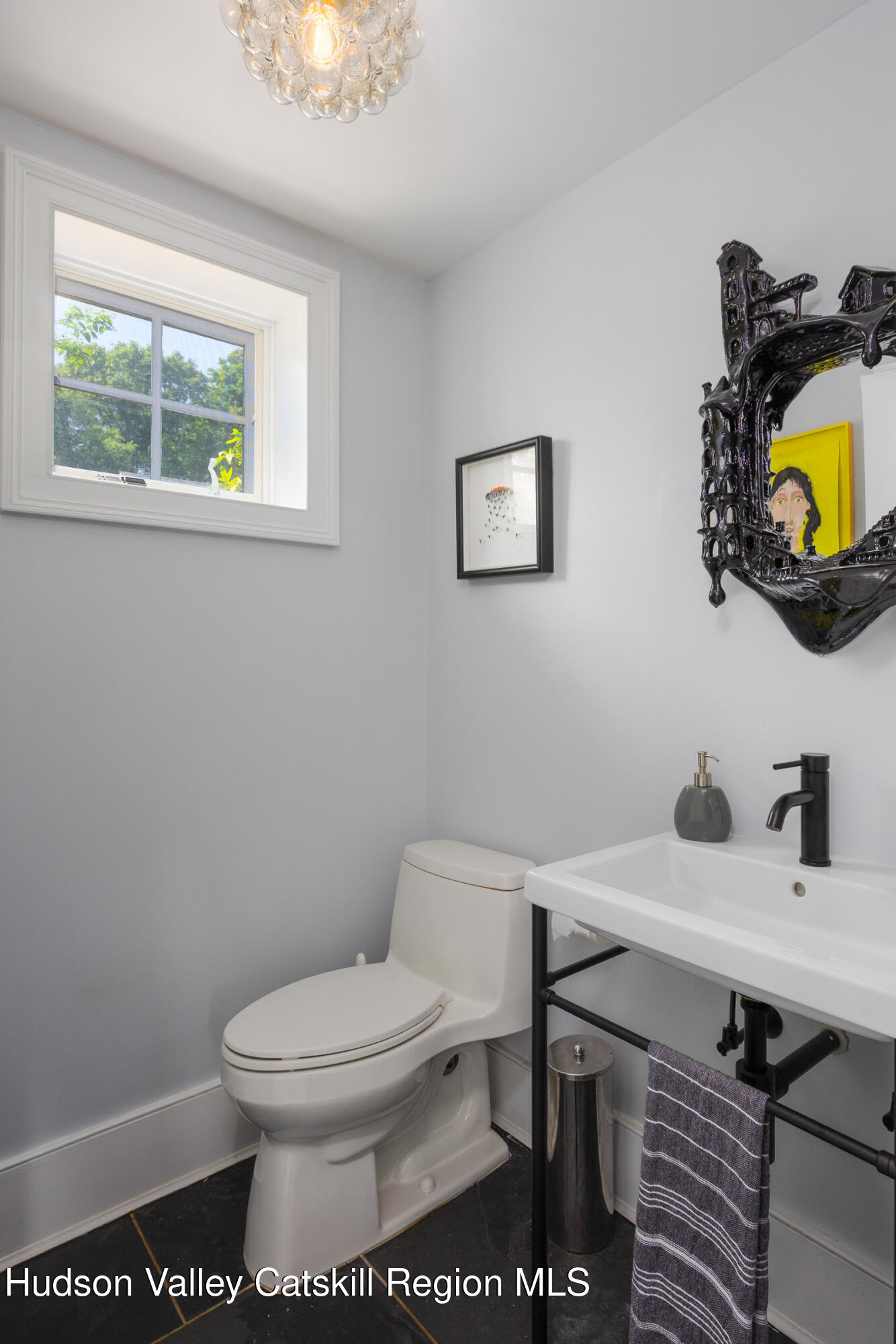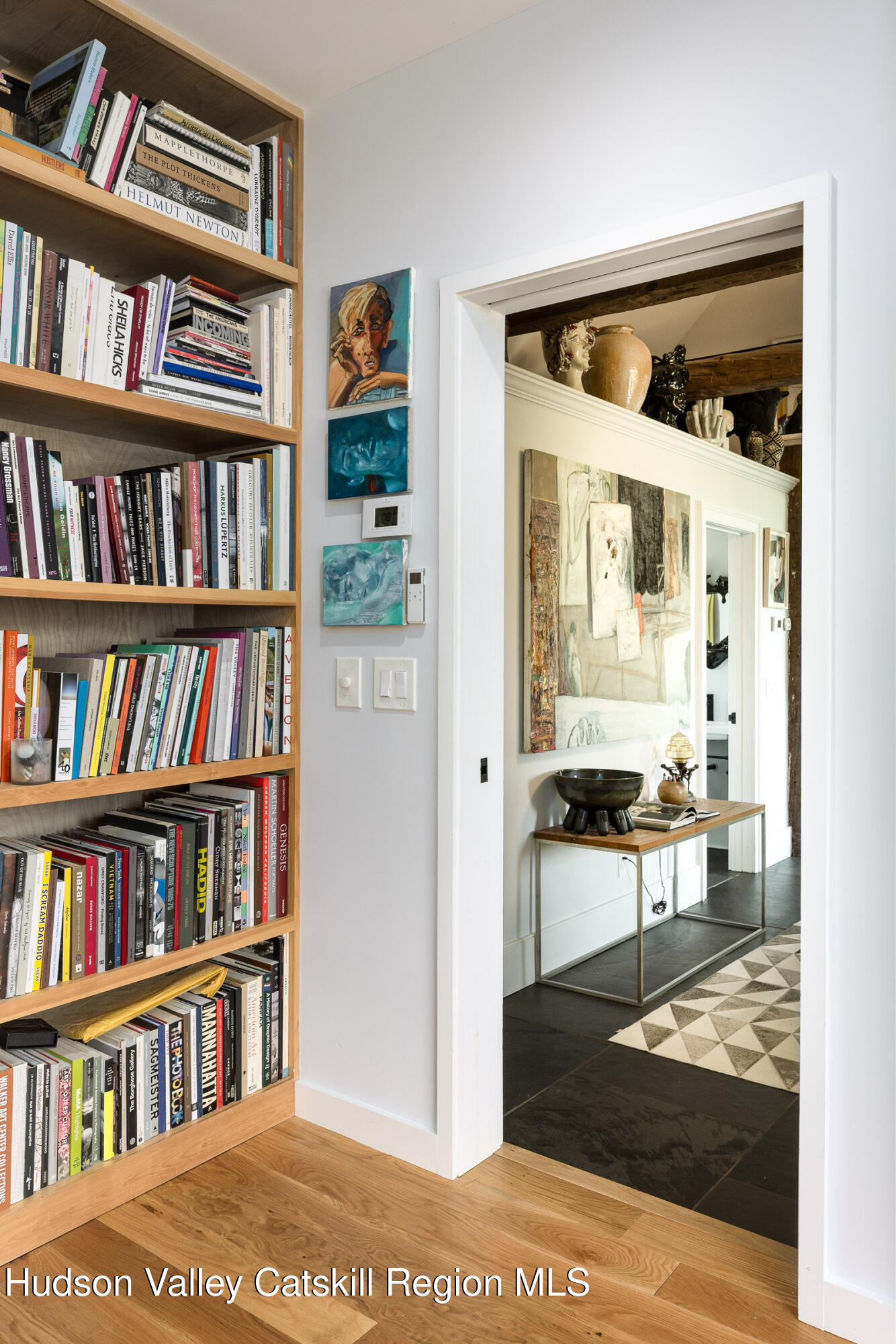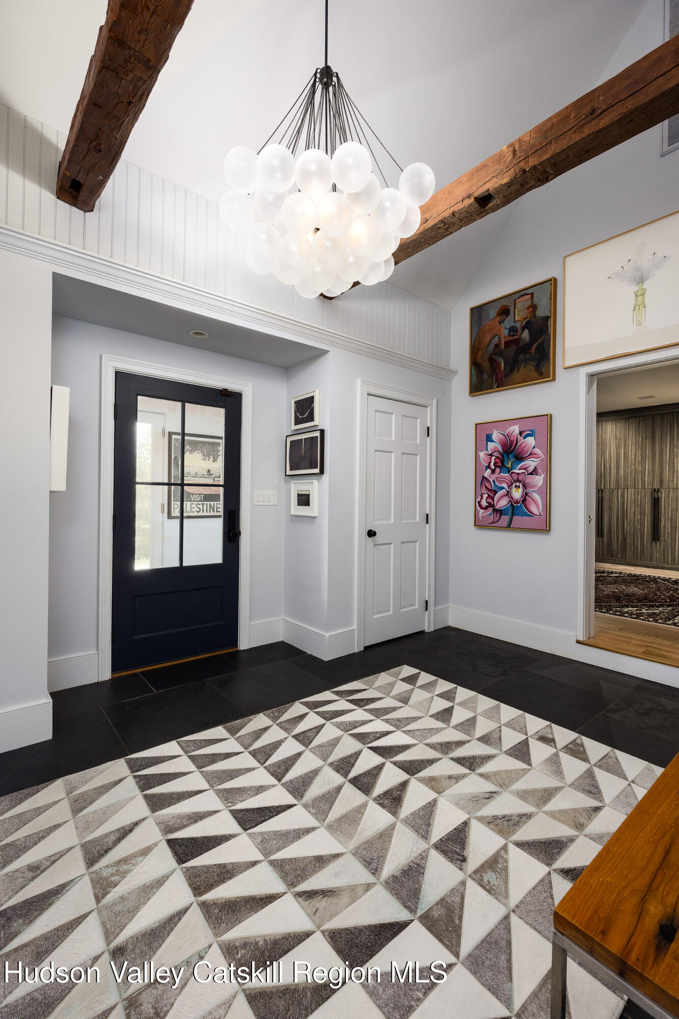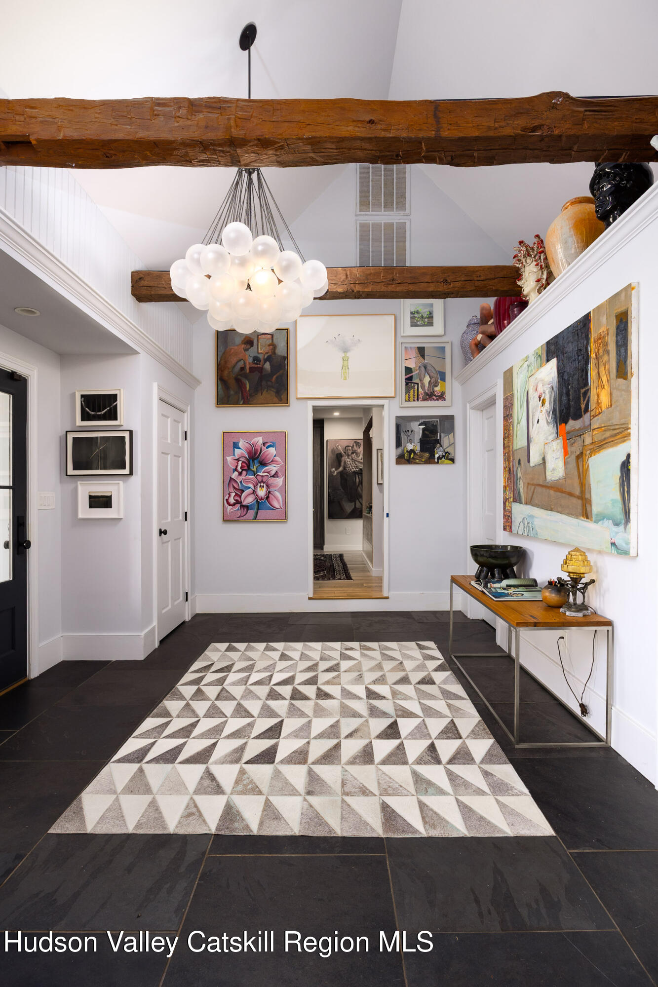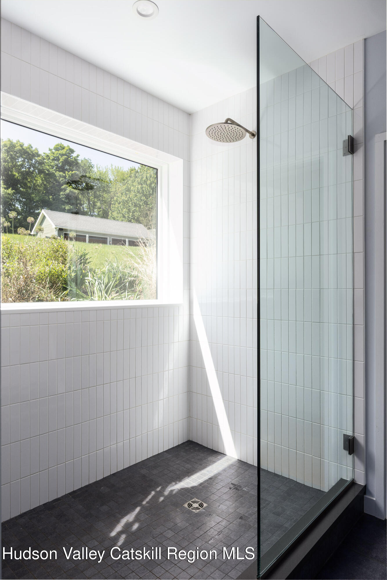 Set on 7.5 private acres with sweeping, cinematic views of the Shawangunk Ridge--including a direct sightline to the iconic Sky Top Tower--this completely reimagined property offers a rare blend of thoughtful design, refined comfort, and serene natural beauty. Since purchasing the home in 2015, the current owners have transformed it from the ground up. Working with a prominent architect, they redesigned the layout to enhance flow and functionality while creating a home that feels cohesive, intentional, and beautifully resolved. Expansive picture windows throughout the home frame the surrounding landscape and fill the interior with light. The living room features custom built-ins, a large wood-burning fireplace, and exposed beams--elements that lend warmth and character to the modern aesthetic. The kitchen is outfitted with custom cabinetry and high-end appliances, and just off the kitchen, a bluestone patio invites al fresco dining in warm months. The main-level primary suite includes a separate sitting room--perfect as a den, office, or a quiet retreat--and a bedroom with another cozy wood-burning fireplace and an abundance of windows that bring in light and views. Upstairs are two generously sized guest bedrooms and a full bath, both with beautiful views of the Ridge. Outdoors, a heated gunite saline pool sits alongside a stylish pool house complete with a full kitchen, powder room, and a rooftop deck offering jaw-dropping vistas. There's also a separate studio with soaring ceilings, a bathroom, and full heating/cooling--currently used as a large art space, and easily adaptable as a workshop or creative studio. Between the indoor layout, the bluestone patio, the pool, rooftop deck, and fully equipped pool house, this home is truly an entertainer's dream--perfect for hosting large gatherings or enjoying quiet personal retreats.